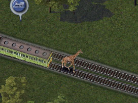 「動物園から脱走したキリン、列車を止める」な〜んて感じで。 |