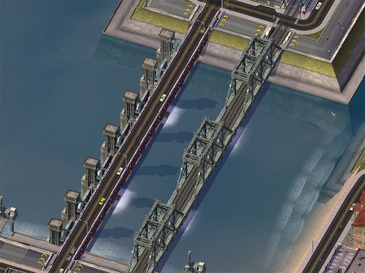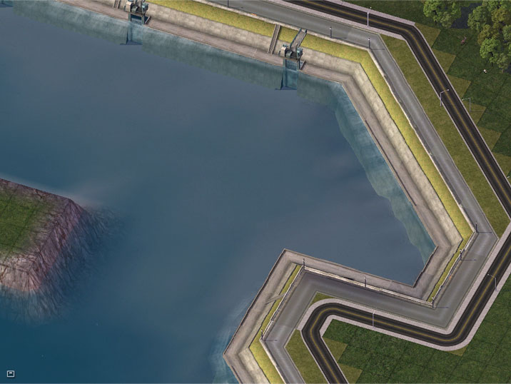 一見して、「鉄橋も作ったのか 」と思いましたが、デフォルトの建築物をNOBさんの作品と錯覚してしまうほど、堰のクオリティが高いですね。画像のように隣に道路を走らせるも良し、堰単独で使っても良しで、都市に個性を与える非常に強力な作品だと思います