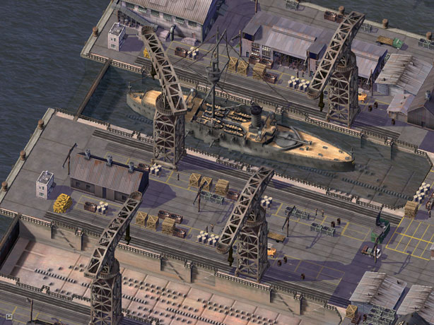 モデリングやテクスチャの質感が凄いのは勿論ですが、内火艇の航跡にグッと来ました ちょっとしたことなのですが、くねっと曲げるだけで景観に動きが出て、ロットとしての完成度がより高まりますね。とても参考になります。