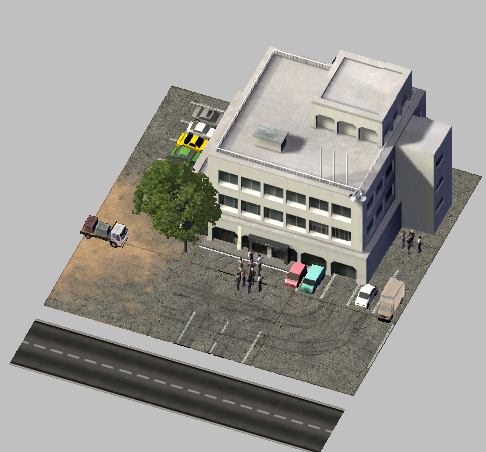 個人的にも、既存のシティーホールの置き換えで行きたかったのですが、この建物をpropで配置した所、既存のシティーホールの屋根から鐘塔(?)が丸見えになった為、失敗しました。