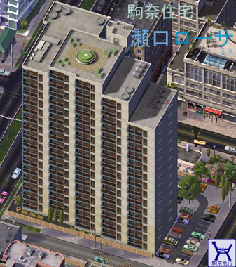 よ〜く見てみると、屋上庭園だけでなく、低層部分の色が上の方と異なっていたり、同じ階のベランダが少しずらして並べてあったりと、細かいところのモデリング等が見事です。