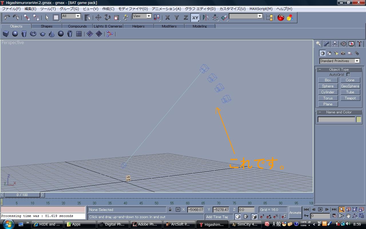 駅の細部を作りこんでいたところ、変なボタンを押してしまって添付図の青い箱と直線が出て消えなくなってしまいました。Export中の画面も本体がとても小さく写っていたのでこのへんな直線もBATとして組み込まれてしまったものと思われます。