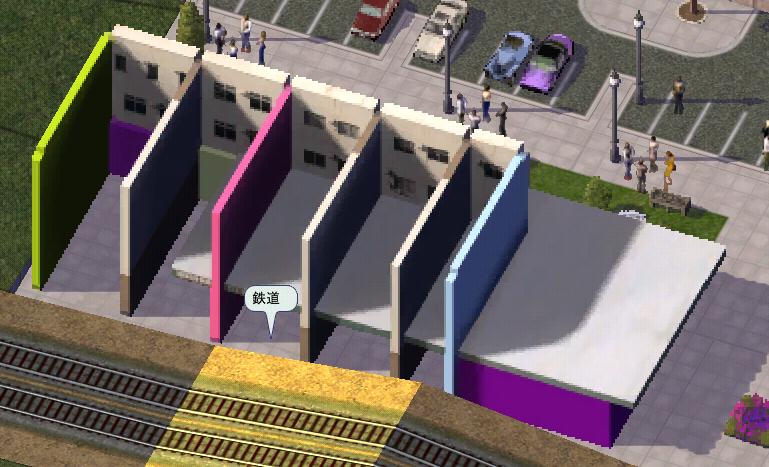 2面4線のホームも作りたいですが、どのくらいの線路幅なのか分からないのでとりあえず駅舎のみ作ってみました。普段はあまりお目にかかれない屋上部がシムシティでは決定的な役割を果たすというのが壁です。アドヴァイスなど頂ければ幸いです。