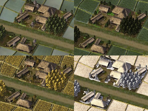 昔の日本風の農業BAT。HD出力。季節変化対応。