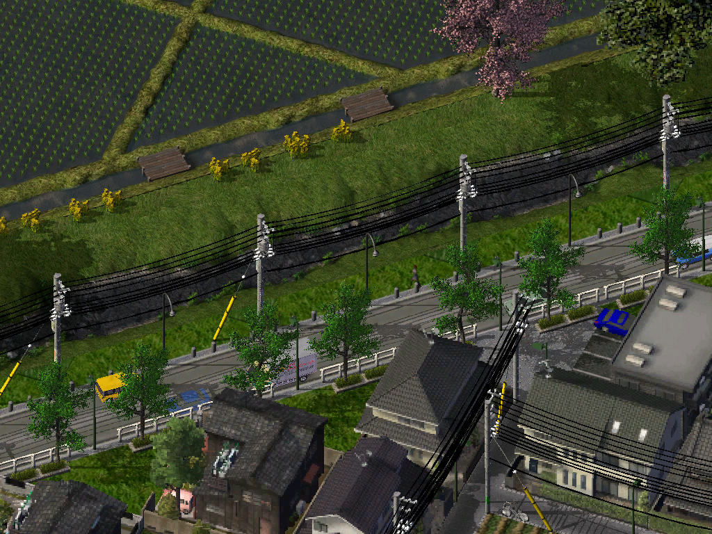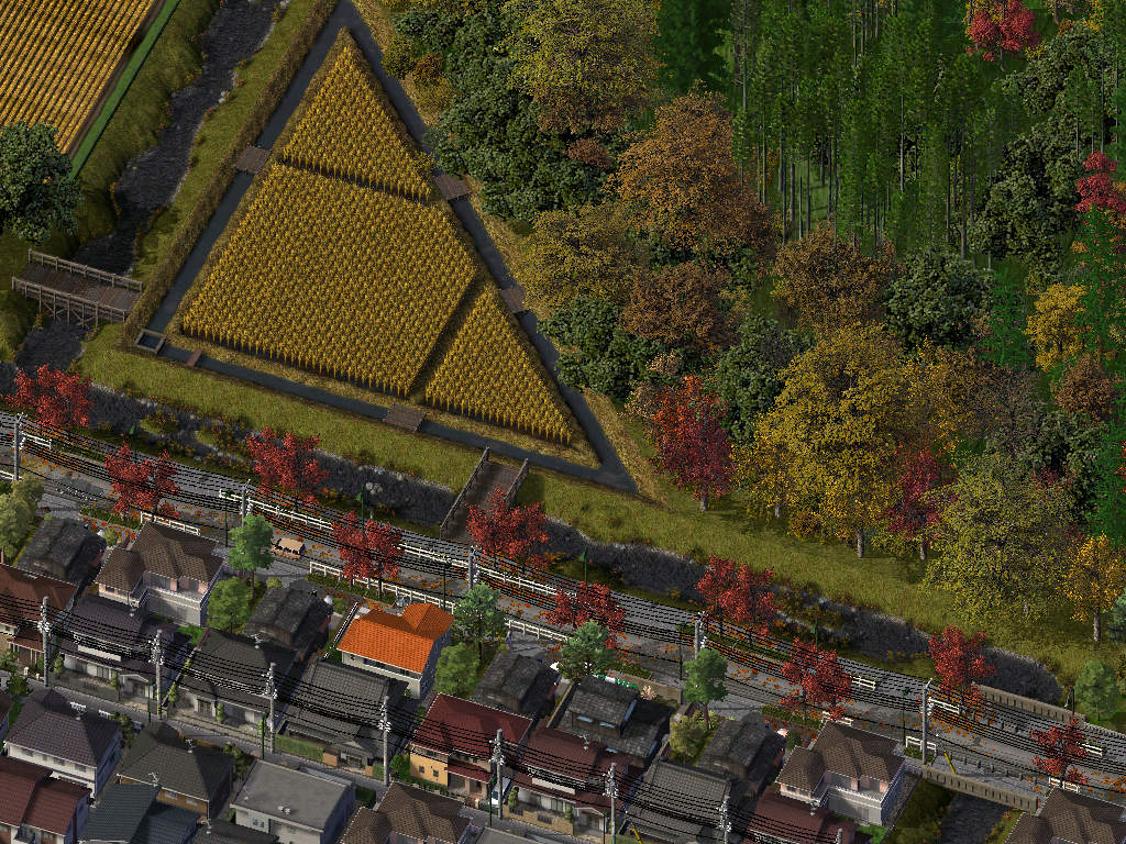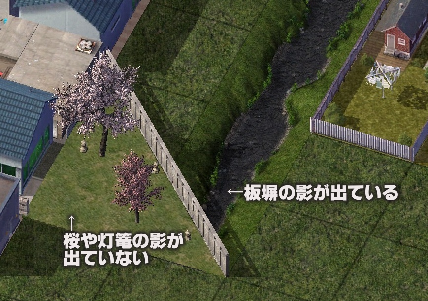 左側の桜や灯篭の影が落ちていないLOTは、私が造った斜めの板塀で地面はprop化したものです。