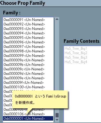 LotEditorを起動後、Add Family のリストに追加されていれば成功です ここで注意することは、ロットのサイズより大きいPropが含まれているとリストに表示されませんので、ロットは予め十分な大きさを確保して下さい。