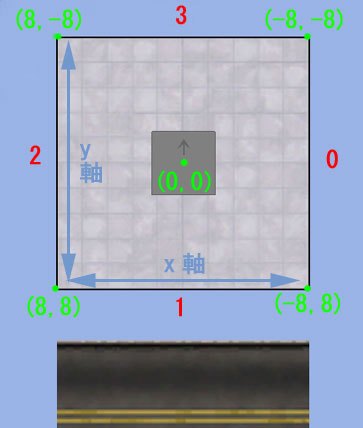 ¤½¤ì¤È¡¢²¼¤Î²èÁü¤ÏLotEditor¾å¤Ç¤ÎÅìÀ¾ÆîË̤ÎÊý³Ñ¤ÈXºÂɸ¤ª¤è¤ÓYºÂɸ¤ÎÃͤǤ¹¡£¥¿¥¤¥ë¤ÎÃæ¿´¤¬(0,0)¤Ç¡¢Î㤨¤ÐËÌÀ¾¤Î³Ñ¤ÎºÂɸ¤Ï(-8,8 )¤È¤Ê¤ê¤Þ¤¹¡£