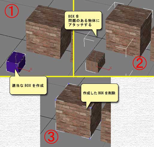 アタッチ後、直ぐに作成したBOXを削除します(図3)。